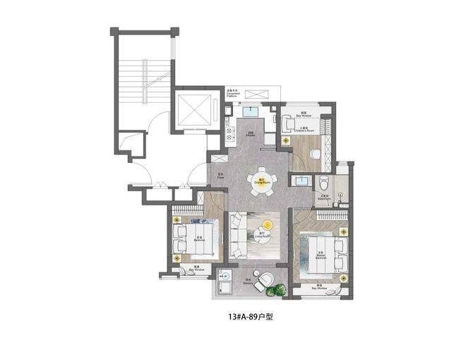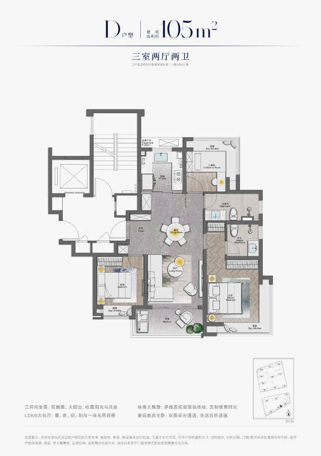 第二,这个户型的高得房率以及3房2卫的方式,能餍足一家人的全人命周期需求,是真正一步到位的产物,户型的产物力极强。